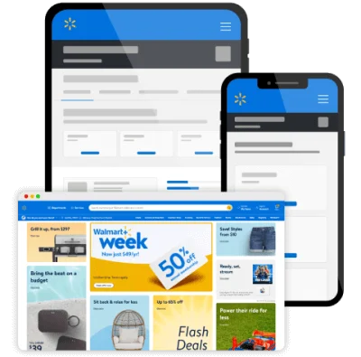 Walmart’s online portal combines brand trust with efficient ecommerce, enabling scalable storefronts, product syncing, multi-location inventory, and modern checkout flows.
